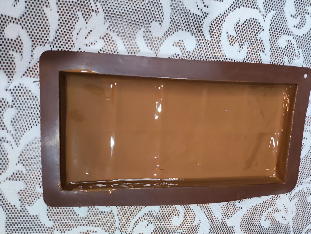 - Yarısını kalıba çikolatayı eşit bir şekilde yayalım ve 3 -4 dakika buzluğa koyalım.