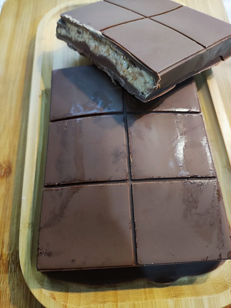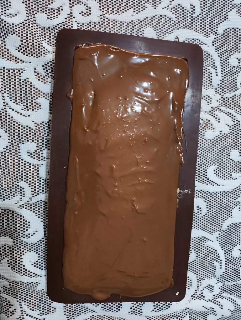 - İç dolguyu donan çikolatanın üzerine eşit miktarda yayalım ve kalan çikolata ile de üzerini kaplayıp tekrar donduralım çikolata tamamen donunca servis edelim.