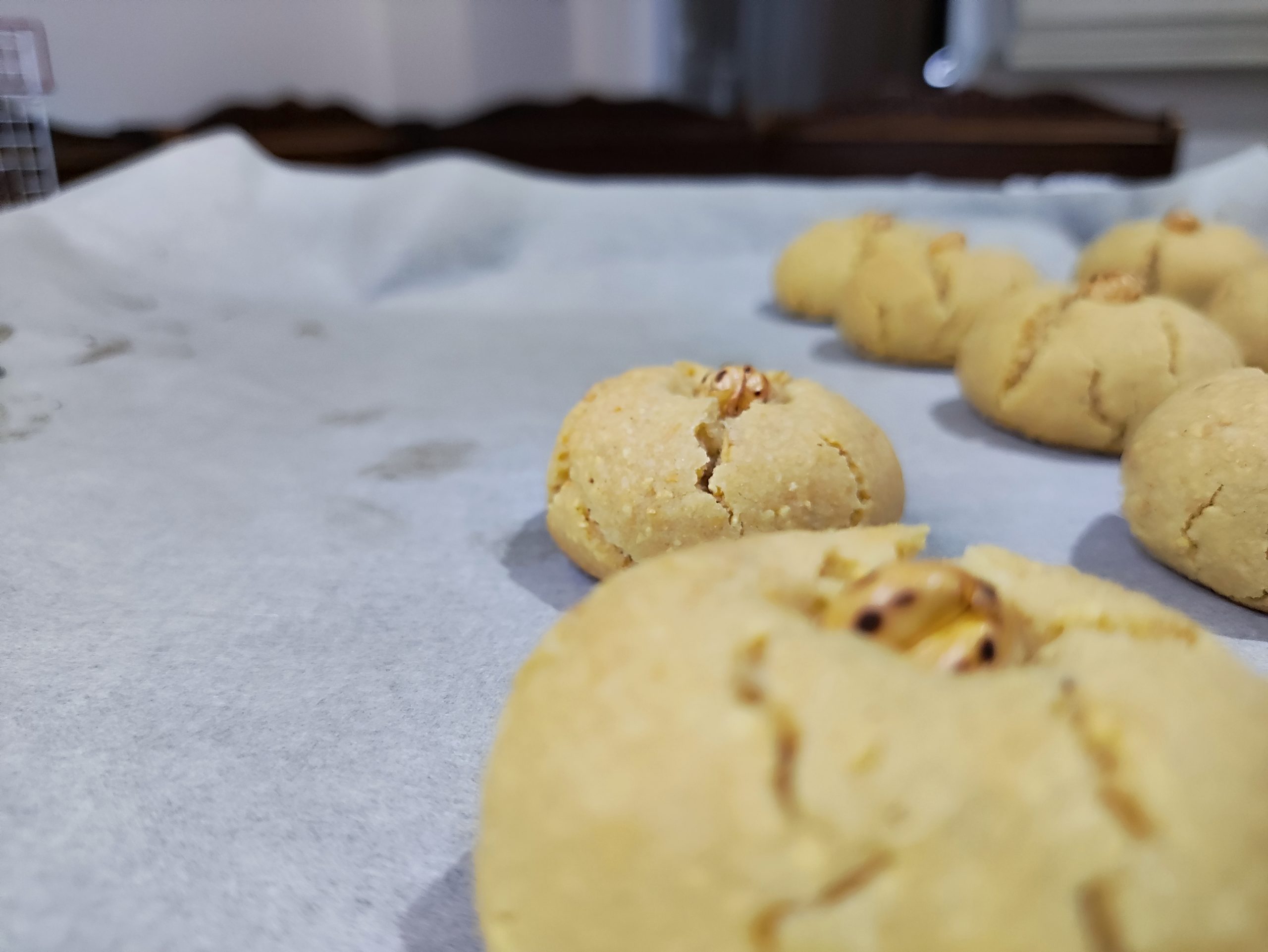 • Ceviz büyüklüğünde küçük parçalar alıp yuvarlayalım. Tepsiye dizip ortalarına leblebi koyunuz.