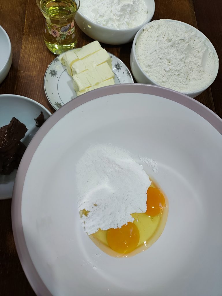 1. Derin bir kabın içinde yumurta ve pudra şekerini ilave ederek yoğurunuz.