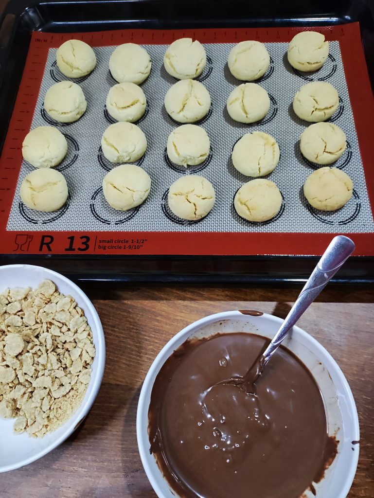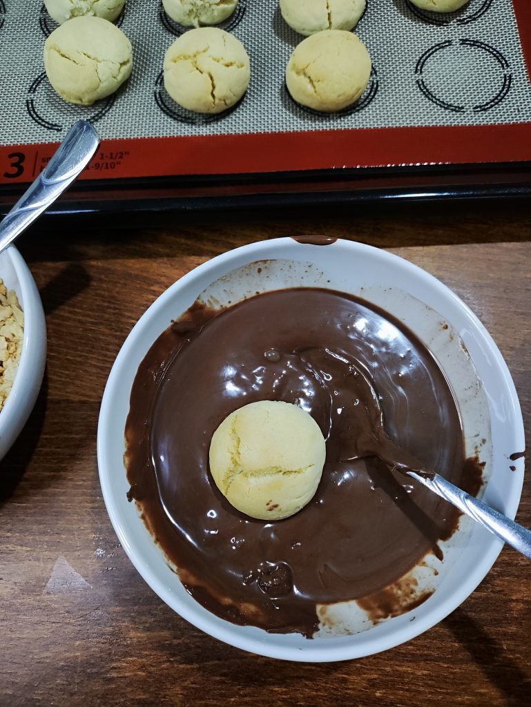 9. Pişen kurabiyeleri ilk önce erittiğiniz ılık çikolata ezmesine batırın.