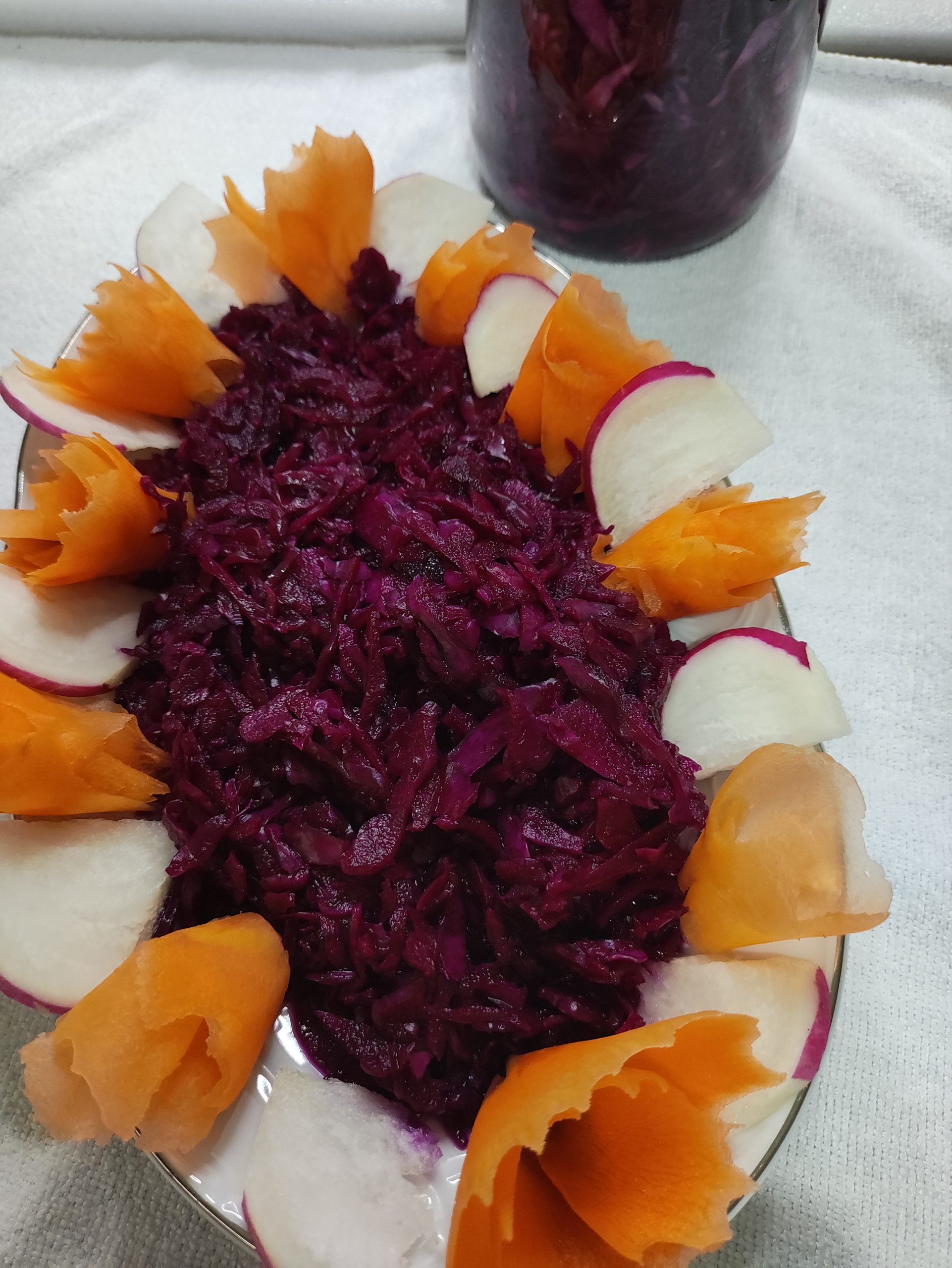 - Mor lahanayı kestikten sonra bir kaba koyup üzerine yemeklik tuzu koyup 5-10 dakika kadar bekletiniz.