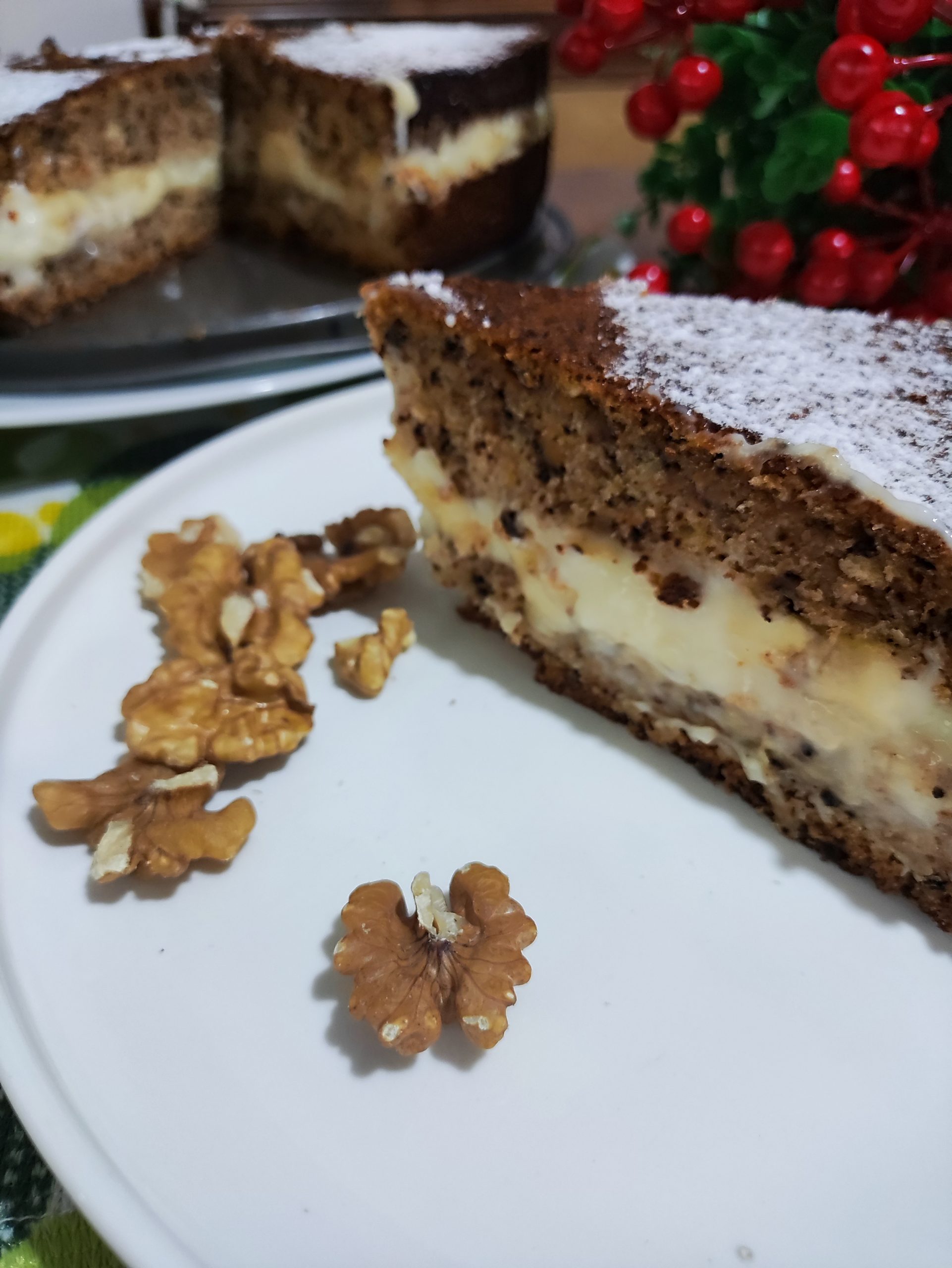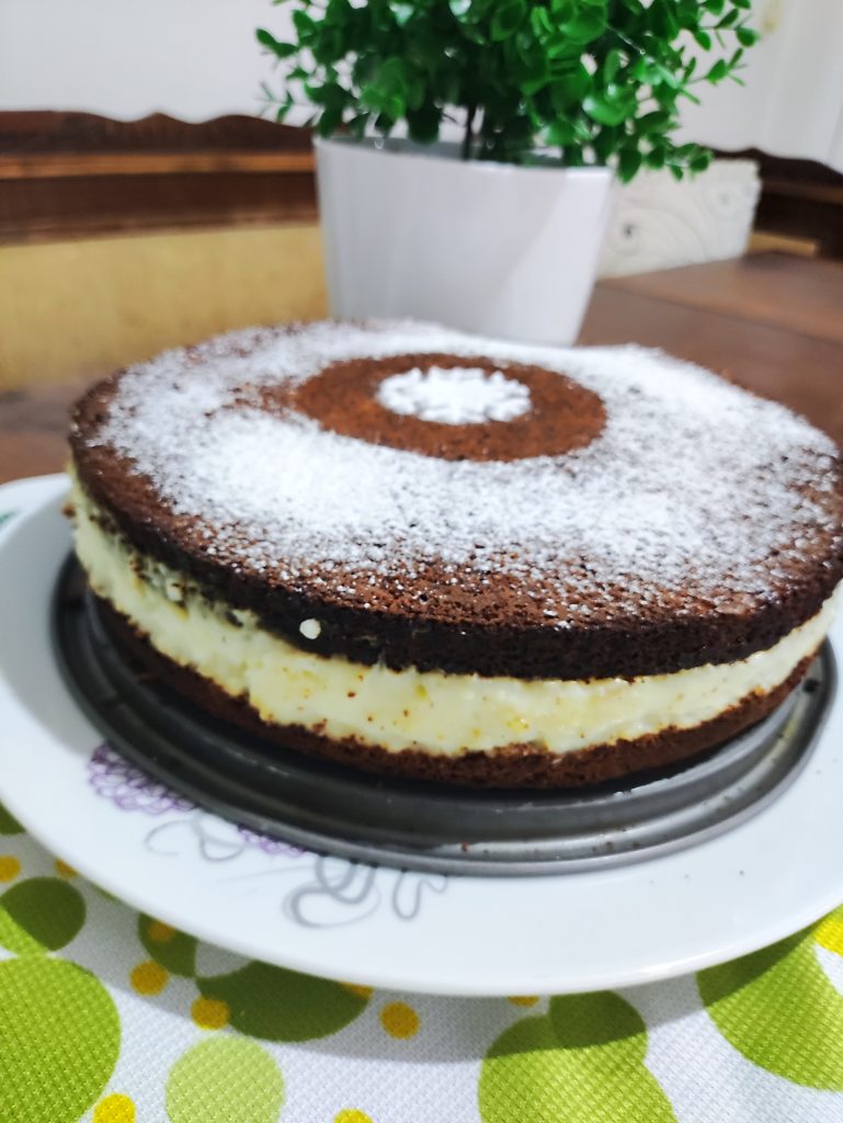 - Soğuyan keki ortada ikiye eşit şekilde kesiniz.