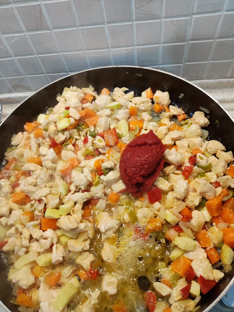 Suyunu çeke sebzenin üzerine salçayı ekleyip karıştırınız.